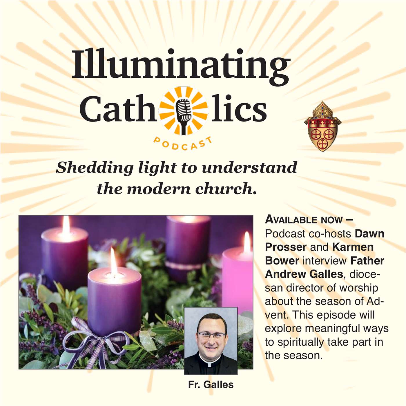 Father Andrew Galles, our diocesan director of worship, shares the hopeful anticipation of the season of Advent with us. From the Isaiah readings at daily Masses to the weekend Gospel readings, O Antiphons, the collect (opening prayers) and the beautiful liturgical music of Advent, the church offers so much to help us truly experience Advent. Father Galles offers suggestions outside of the liturgy for the faithful to best prepare for the great feast of Christmas after the conclusion of Advent. You won't want to miss this episode!