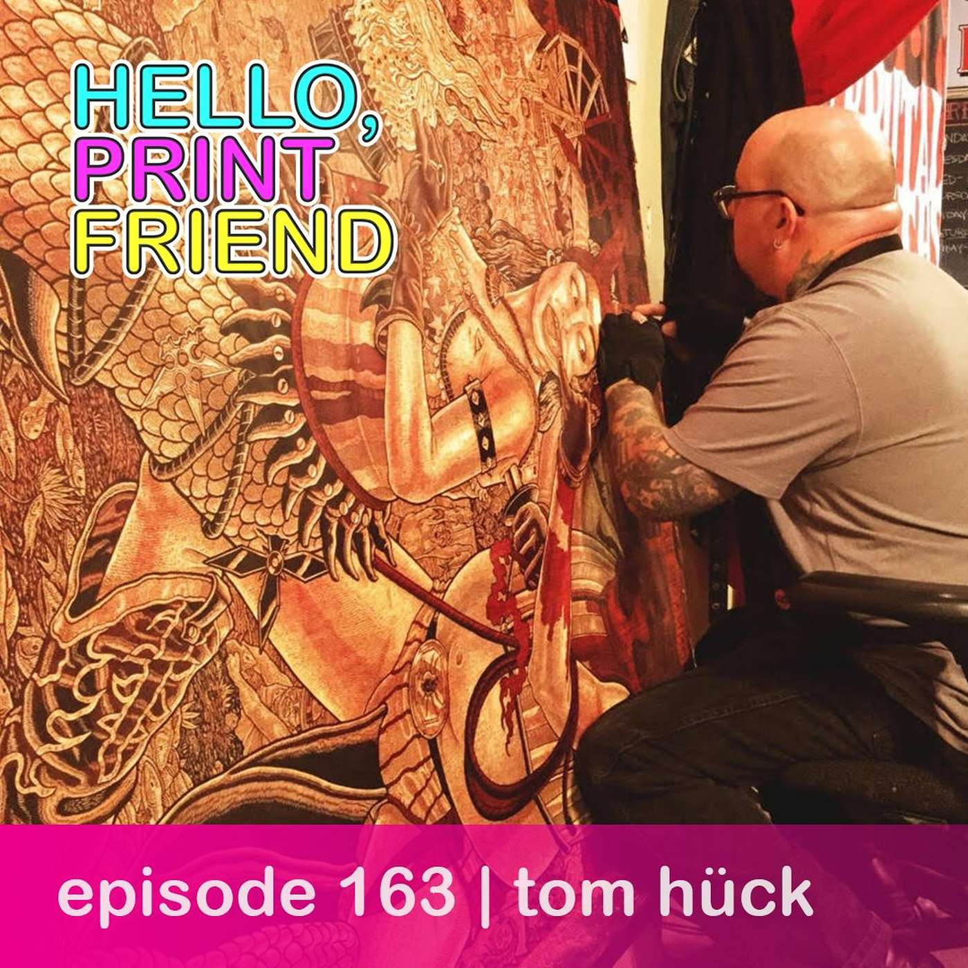 In this episode of Hello Print Friend, Miranda speaks with Tom Hück. We talk about what it’s like to make some of the most beloved and controversial images in contemporary printmaking, selling affordable works for young collectors and suites to the Metropolitan Museum of Art, his heroes, and the Tom Hück ethos.Tom Hück's Websitehttp://www.evilprints.com/Print Santa Fewww.printsantafe.orgYOUTUBEwww.youtube.com/channel/UCOMIT3guY5PjHj1M7GApouwMERCHwww.teepublic.com/user/helloprintfriendWEBSITEwww.helloprintfriend.comInstagramwww.instagram.com/helloprintfriend✨patreon✨www.patreon.com/helloprintfriendOur sponsor Speedballwww.speedballart.com