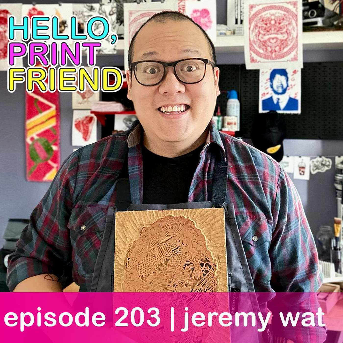 This week Miranda speaks with Jeremy Wat. They talk about how a trip to China changed his artistic practice forever, the best techniques when communicating with creative partners, the difference between graphic design and fine art, and the fun and stress of creating block portraits of friends and family. Jeremy's Instagramhttps://www.instagram.com/made.by.jerwat/YOUTUBEwww.youtube.com/channel/UCOMIT3guY5PjHj1M7GApouwMERCHwww.teepublic.com/user/helloprintfriendWEBSITEwww.helloprintfriend.comInstagramwww.instagram.com/helloprintfriendâ¨patreonâ¨www.patreon.com/helloprintfriendOur sponsor, Speedballwww.speedballart.com