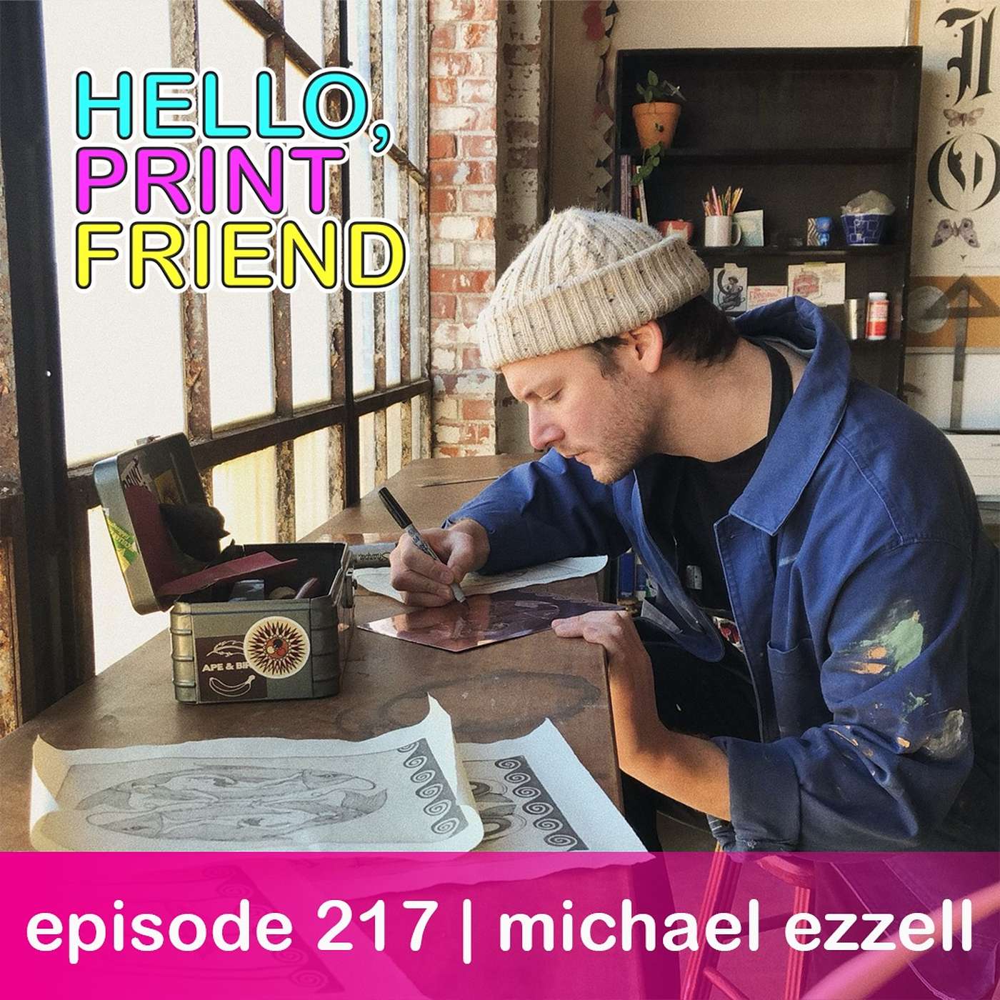 This week, Miranda speaks with Michael Ezzell. They talk about the diversification of his printmaking practice, the inherent queerness in Greek and Roman art, creative practice when you have a developed aesthetic, and astrological etchings.Michael's Websitehttps://mezzell.comMichael's Instagramhttps://www.instagram.com/eezzll/YOUTUBEwww.youtube.com/channel/UCOMIT3guY5PjHj1M7GApouwMERCHwww.teepublic.com/user/helloprintfriendWEBSITEwww.helloprintfriend.comInstagramwww.instagram.com/helloprintfriendâ¨patreonâ¨www.patreon.com/helloprintfriendOur sponsor, Speedballwww.speedballart.comOur sponsor, Legion Paperwww.legionpaper.com/