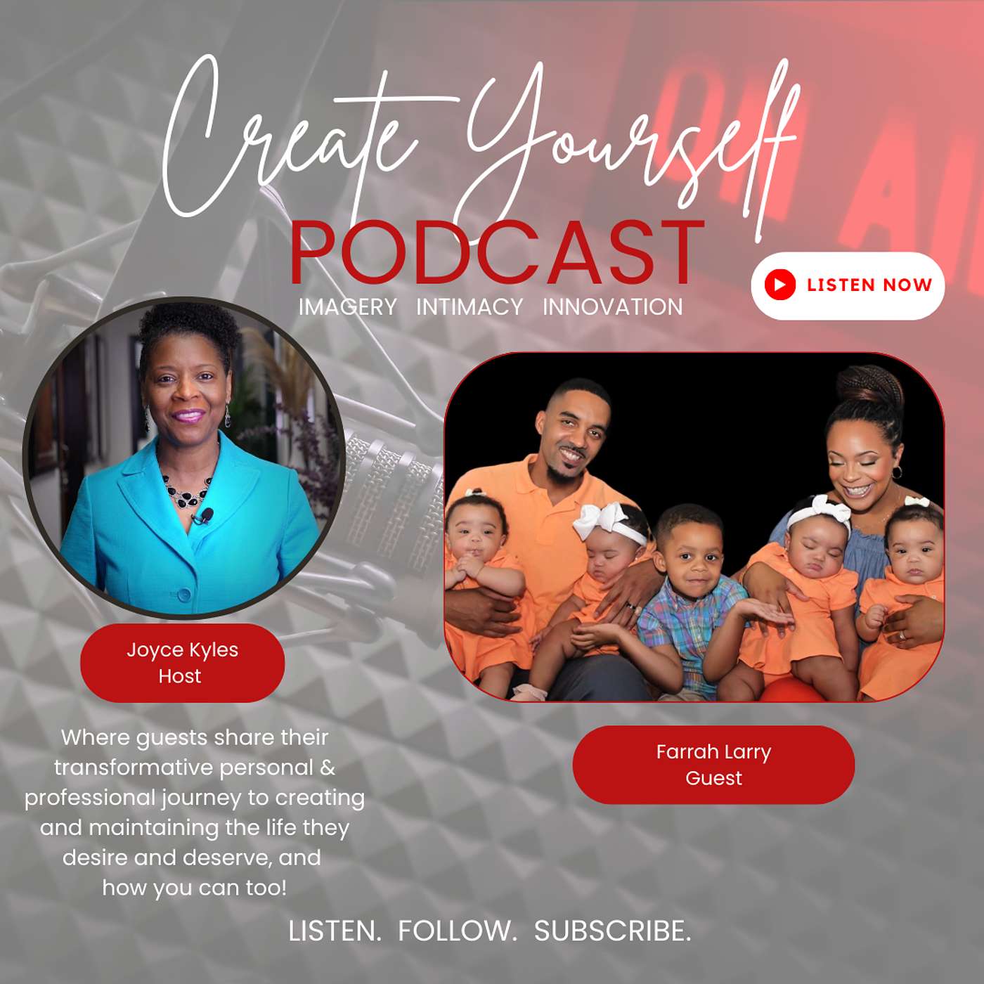 1 in 700,000: The approximate odds in having spontaneous quadruplets. Today’s inspiring episode features the many layers of Farrah Larry and her continuous faith-driven journey as wife, mother of PJ and the Quads and business owner. She and her husband couldn’t have fathomed this would be their lives at age 30. They wouldn’t have it any other way. This entire interview is 100% filled with gems, guidance, and an understanding of why walking in your assignment, trusting the process, prayer, and pivoting will yield personal and professional abundance.