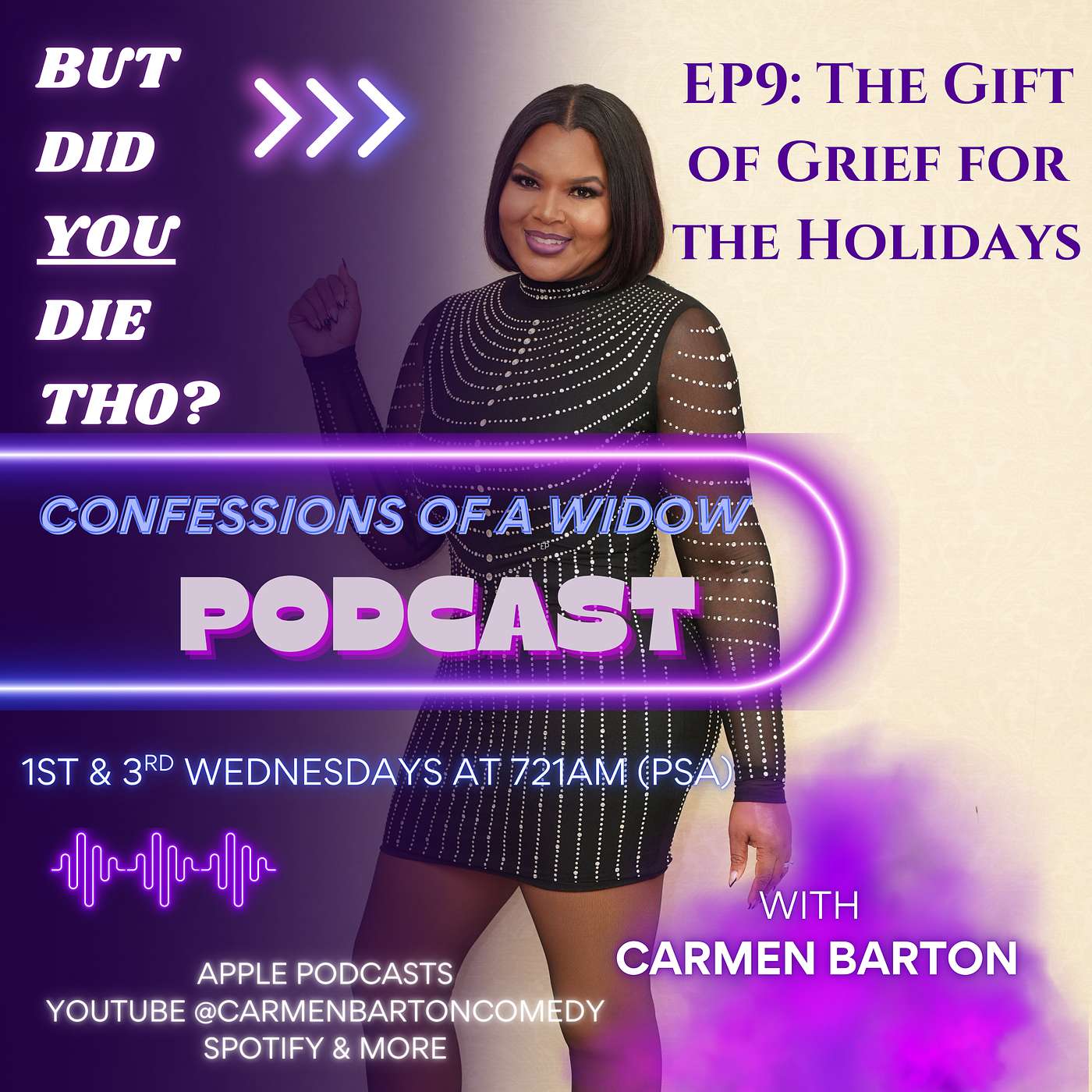 In this reflective and heartfelt episode of But Did You Die Though: Confessions of a Widow, Comedian Carmen Barton talks honestly about what happens when grief shows up anyway — even after you’ve made plans, booked trips, stayed busy, and tried to distract yourself through the holidays.