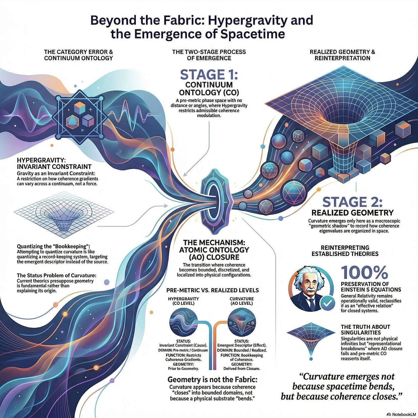 What if gravity isn’t a force pulling apples or a field curving a rubber sheet, but a rule that shapes what can exist before space and time even appear? We dive into a bold framework called hypergravity that flips the script: geometry isn’t the substrate of reality, it’s the trace. By treating gravity as an invariant constraint acting on pre-geometric coherence, we preserve Einstein’s equations where they excel while explaining why singularities, gravitons, and the “local energy” of gravity keep tripping us up.