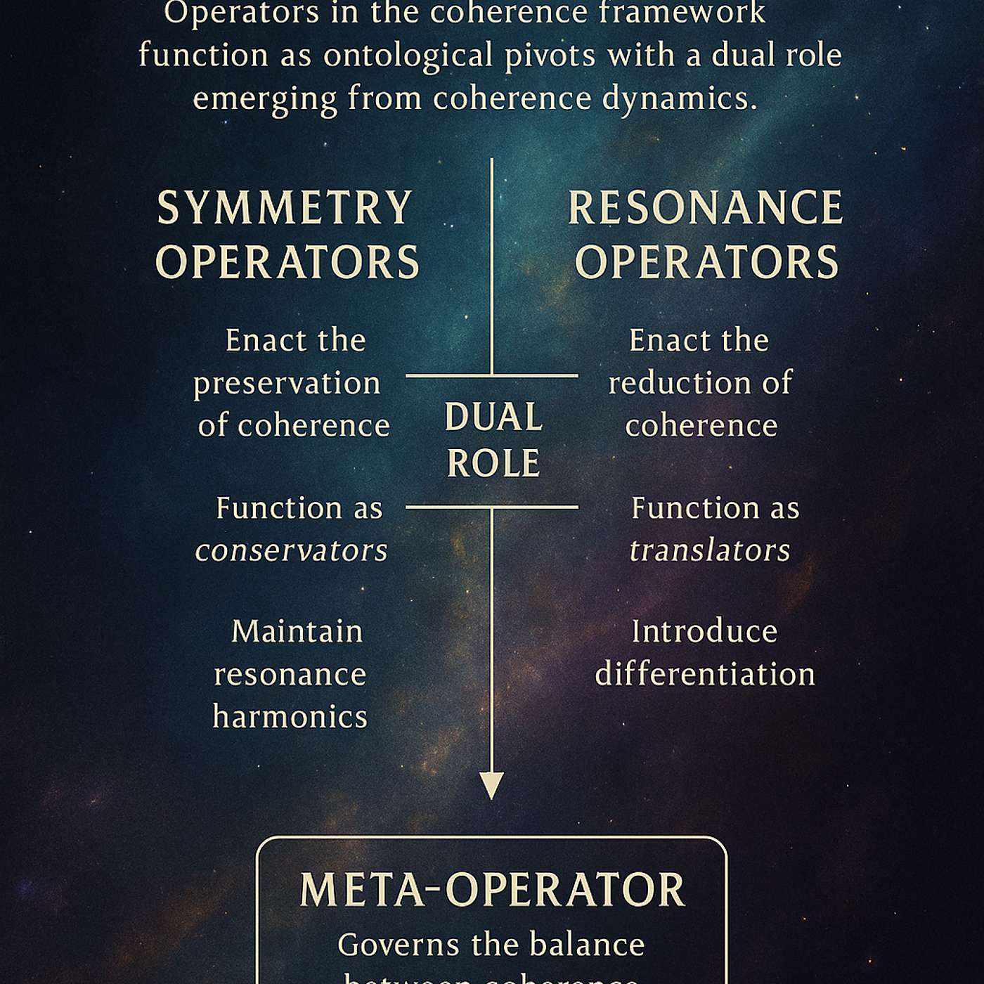 At the heart is the "universal triad of being": symmetry that unifies and creates order, asymmetry that differentiates and creates diversity, and resonance that mediates between them, maintaining dynamic balance. Together, they generate reality through four layers—from pure mathematical potential to our observable world—in a continuous cycle of transformation that ensures coherence never disappears, only evolves.