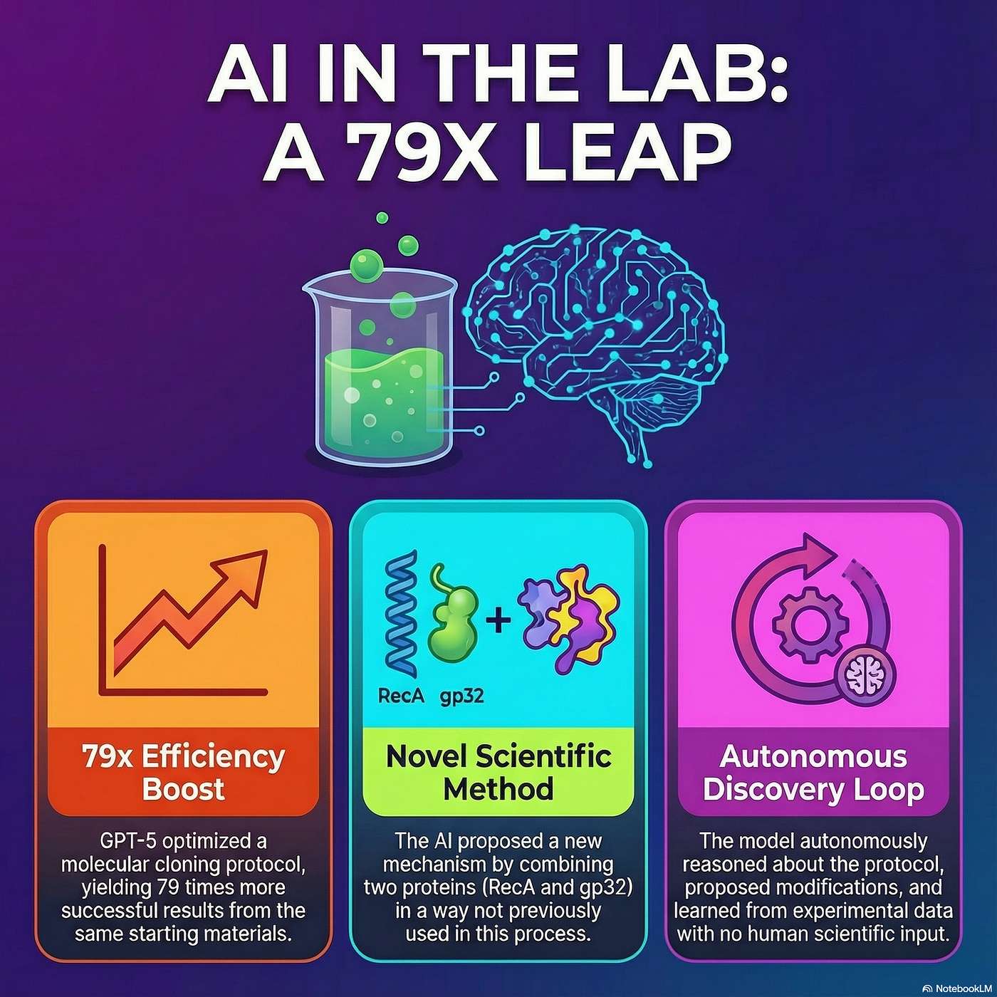 We unpack the OpenAI–Red Queen Bio study that had an AI design RAPF HiFi—RECA-assisted assembly paired with GP32, a novel temperature cycle, and a surprising downstream boost from pelleting cells at 4°C—that together delivered a 79x jump in cloning efficiency, validated by a robotic automation system. We break down the mechanism, the validation, and the implications for speeding biology from months to days, with a look at the future of AI-assisted wet labs.