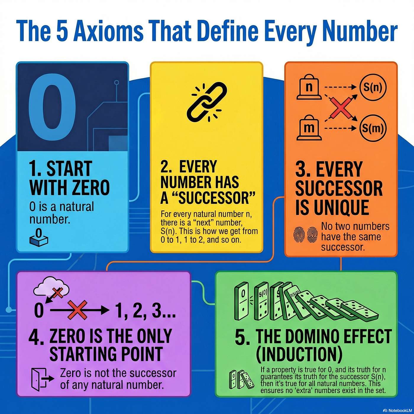 A concise tour of the axioms that ground the natural numbers. We explore zero, the successor function, and induction, show how addition is defined recursively, and glimpse the deep questions about consistency and the existence of non-standard models in first-order logic.