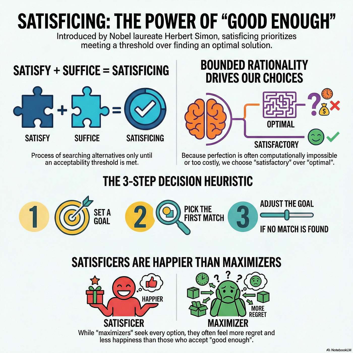 We explore Herbert A. Simon’s idea of bounded rationality and the art of satisficing—the practice of choosing the first option that meets your criteria rather than chasing the optimal solution. Learn how aspiration thresholds, stopping rules, and simple heuristics save mental energy in a complex world, and why good‑enough decisions can outperform relentless optimization in business and everyday life.