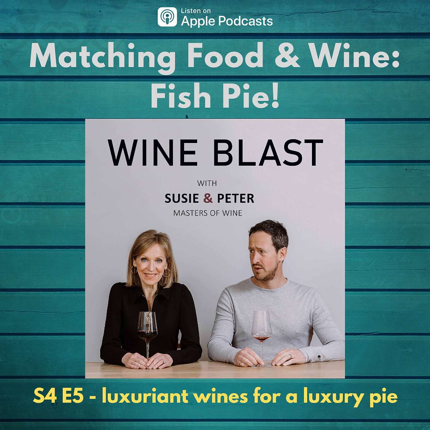 The recipe for our smoky fish pie is available, together with all links, photos, wines and more details from the show, on our website: Show notes for Wine Blast S4 E5 - Matching Food and Wine: Fish Pie!
