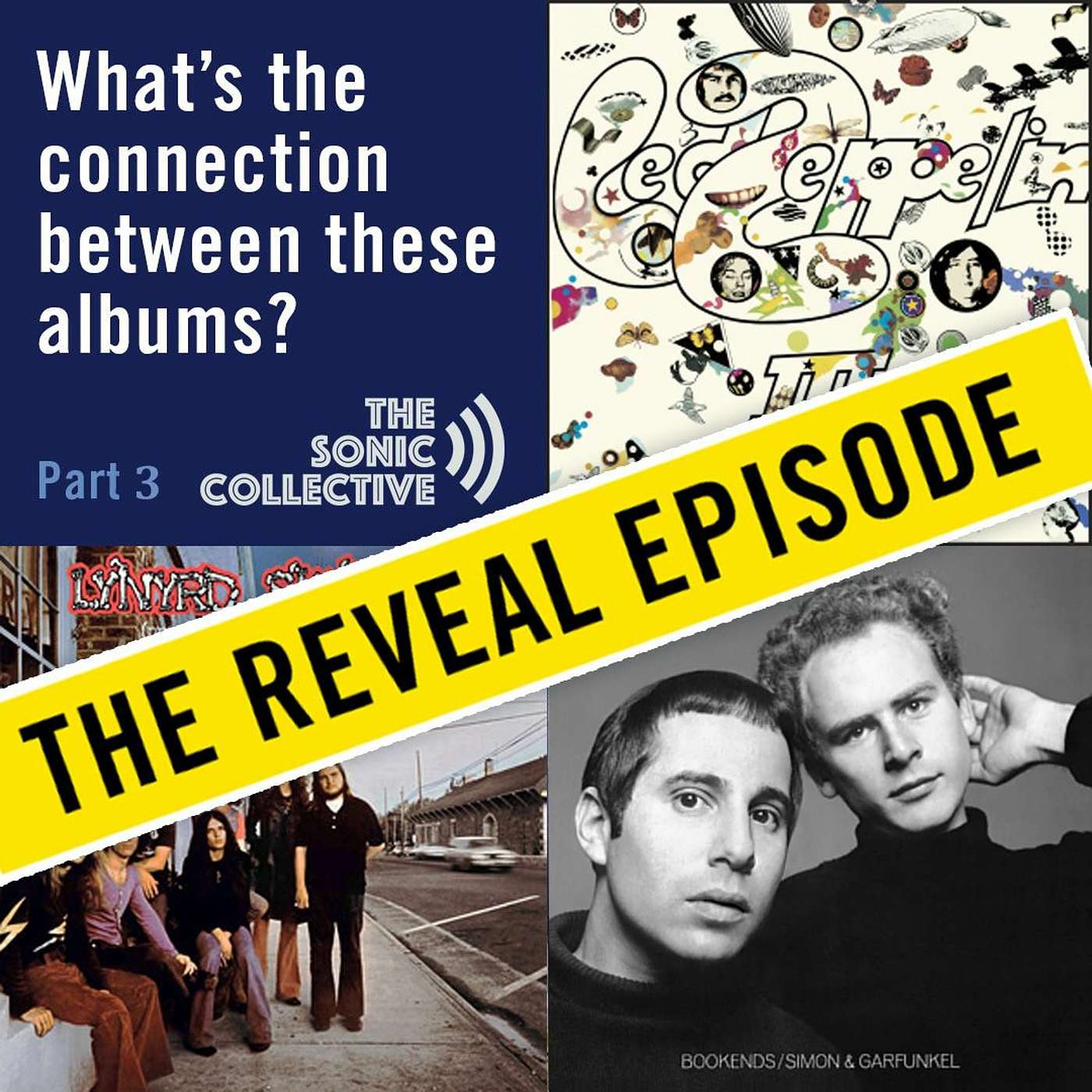 For the next four months we are changing up our format to try something fun. Each of us will pick three albums that share a common thread. We want you to listen to these albums and try to figure out what the common thread between them is. We listened to Led Zeppelin 3 by Led Zeppelin, Bookends by Simon and Garfunklel, and Pronounced 'Leh-'Nerd 'Skin-'Nerd- by Lynyrd Skynyrd. How did we like the albums, and what was the connection? All is revealed in this episode. You can listen here and we will put more content on our website at TheSonicCollective.com.