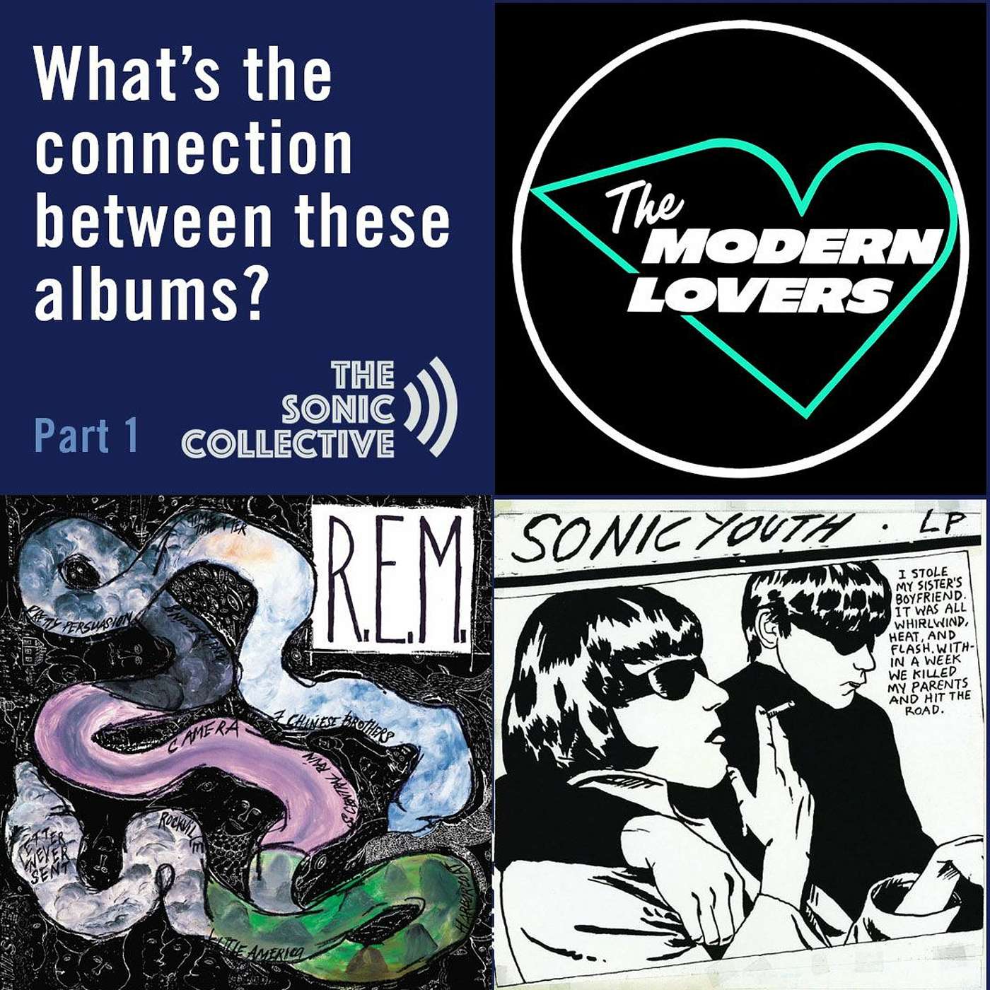 For the next four months we are changing up our format to try something fun. Each of us will pick three albums that share a common thread. We want you to listen to these albums and try to figure out what the common thread between them is. Member Darren Scott is up first and he chose The Modern Lovers self-titled album, R.E.M's Reckoning album and Sonic Youth's Goo album. Listen to the full details of this fun music lovers challenge in this episode and to hear Darren's first pick. There are definitely some hints in this episode. Join us for the next episode to hear the discussion, the guesses and the reveal of what the common thread is. Good luck!For full show notes and access to all our shows and media, please join us at https://TheSonicCollective.com.Darren @ The Sonic Collective