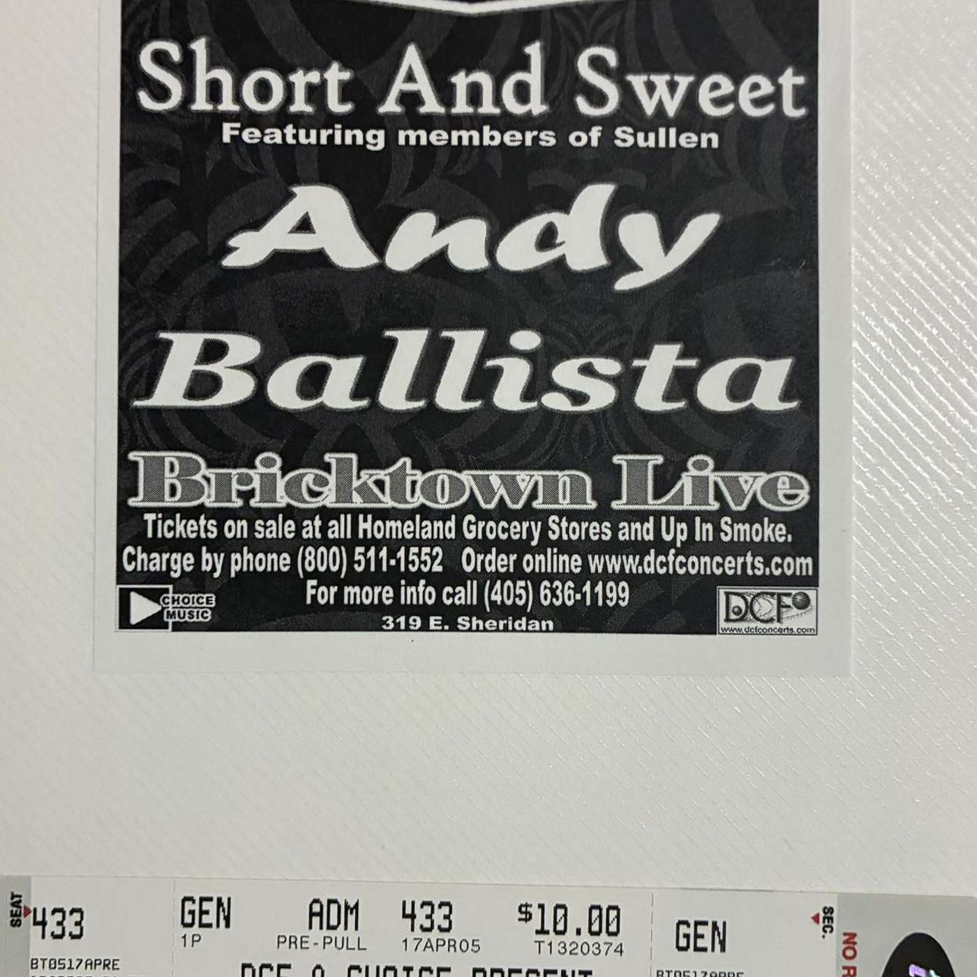 Local H at Bricktown Live. Ten bucks. Short and Sweet, Andy, and Ballista on the bill. Ballista was local. Tight scene. Downtown Bricktown energy. That room was loud, sweaty, and perfect for a band like Local H.