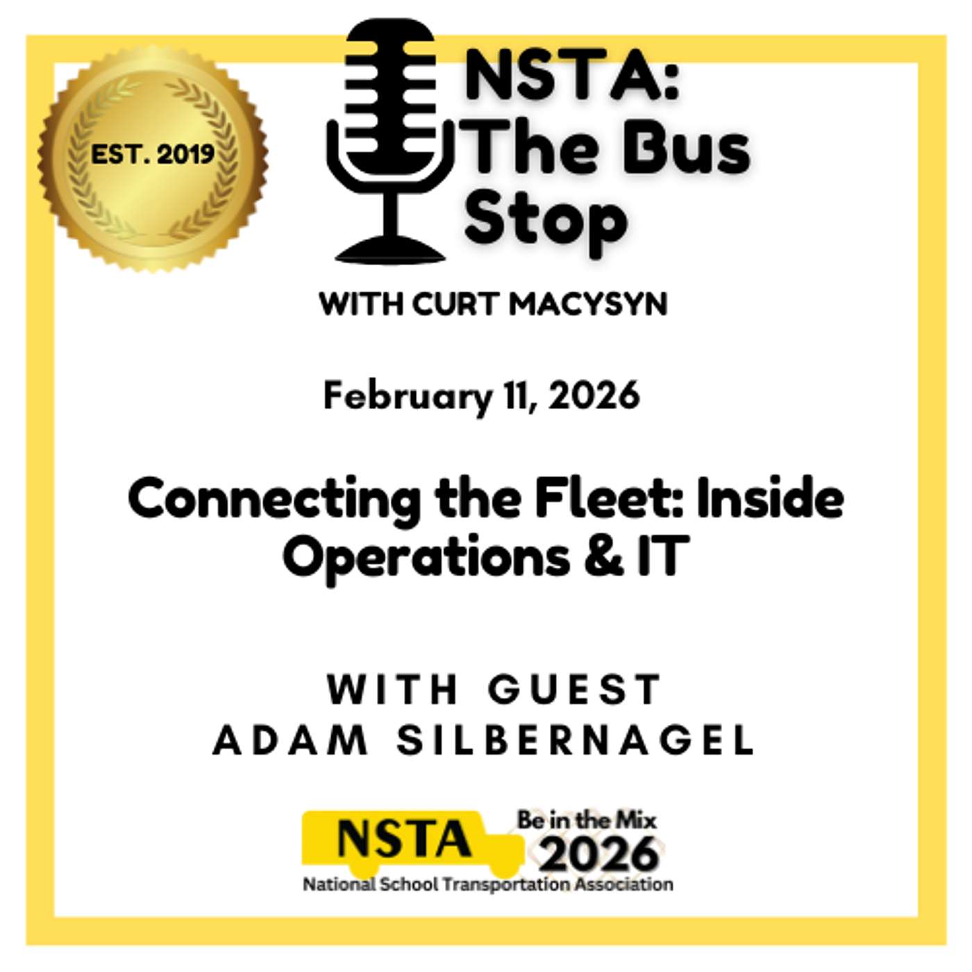 This week at NSTA: The Bus Stop- Executive Director Curt Macysyn welcomes first-time guest Adam Silbernagel, Senior Vice President of Information Technology at Summit School Services and a 2026 NSTA Midwinter Meeting MST Technology Panelist. Adam shares his professional background and how he found his way into the student transportation industry, along with his first impressions after attending his first live NSTA meeting in Fort Lauderdale. Adam gives listeners a unique perspective on the MST panel, Averting Disaster: Tech Goes Down—Be Prepared, and discusses how contractors can maintain operations when critical technology systems fail. The duo explore the increasing reliance on software and telematics in school transportation, the challenges that it creates for contractors, and how leaders balance operational needs with IT priorities. Shifting to a more personal note, Adam reflects on being named a finalist for the 2026 ChicagoCIO ORBIE Awards and shares some marathon training stories. Curt and Adam dive into some Big Ten basketball talk before wrapping up with where listeners can learn more about Summit School Services. Become a podcast subscriber and don't miss an episode of NSTA: The Bus Stop- NSTA Vendor Partners can take advantage of our comprehensive advertising package that will help you reach your target audience - private school bus operators!