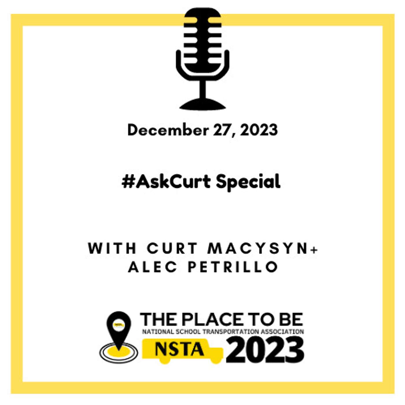 This week at NSTA: The Bus Stop - The second annual #AskCurt Special, NSTA Executive Director is joined by NSTA Director of Advocacy and Membership Engagement, Alec Petrillo, as he answers listener submitted questions. Topics range from the origins of the yellow school bus, to the Under the Hood Exemption, to this weekends College Football Playoff. Become a subscriber and listen to a new episode every week - reasonable advertising packages are available too!