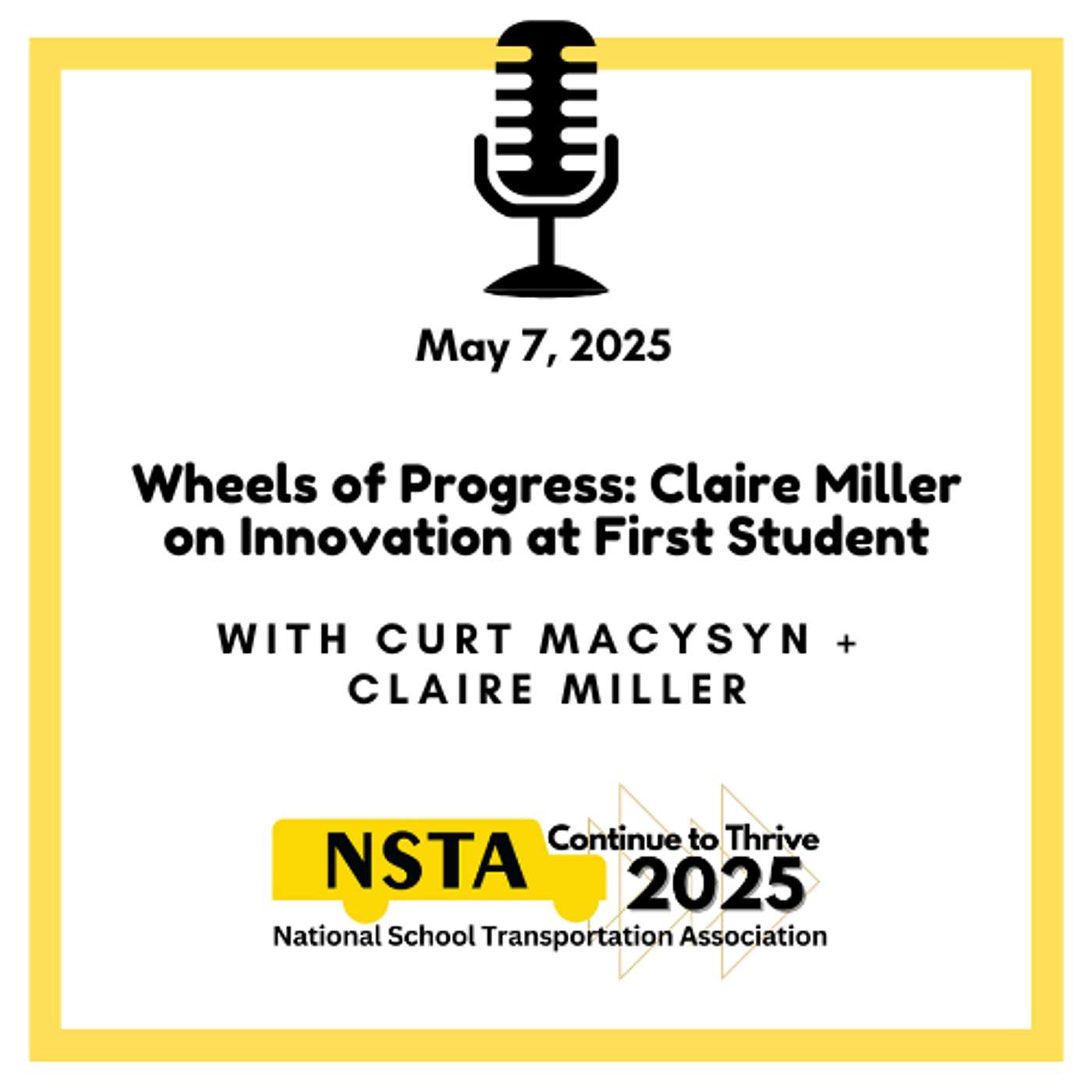 This week at NSTA: The Bus Stop - Executive Director Curt Macysyn is joined by returning guest Claire Miller, Chief Commercial Officer of First Student and a member of the NSTA Board of Directors. Claire begins by sharing her background and what inspired her to enter the school transportation industry with First Student. Claire and Curt explore the effects of daylight saving time, and the federal proposal to make it permanent. Claire recounts a few heartfelt stories that highlight First Student’s meaningful role in the communities it serves. She also offers an overview of First View, a platform that is transforming communication and transparency for families and school districts. Finally, the duo discusses First Student's fleet electrification initiatives and NSTA's lobbying effort in support of contractor direct access to Clean School Bus Program grants. Become a podcast subscriber and don't miss an episode of NSTA: The Bus Stop - NSTA Vendor Partners should reach out to us to hear about our comprehensive advertising packages that will help you hit your target audience - school transportation professionals!
