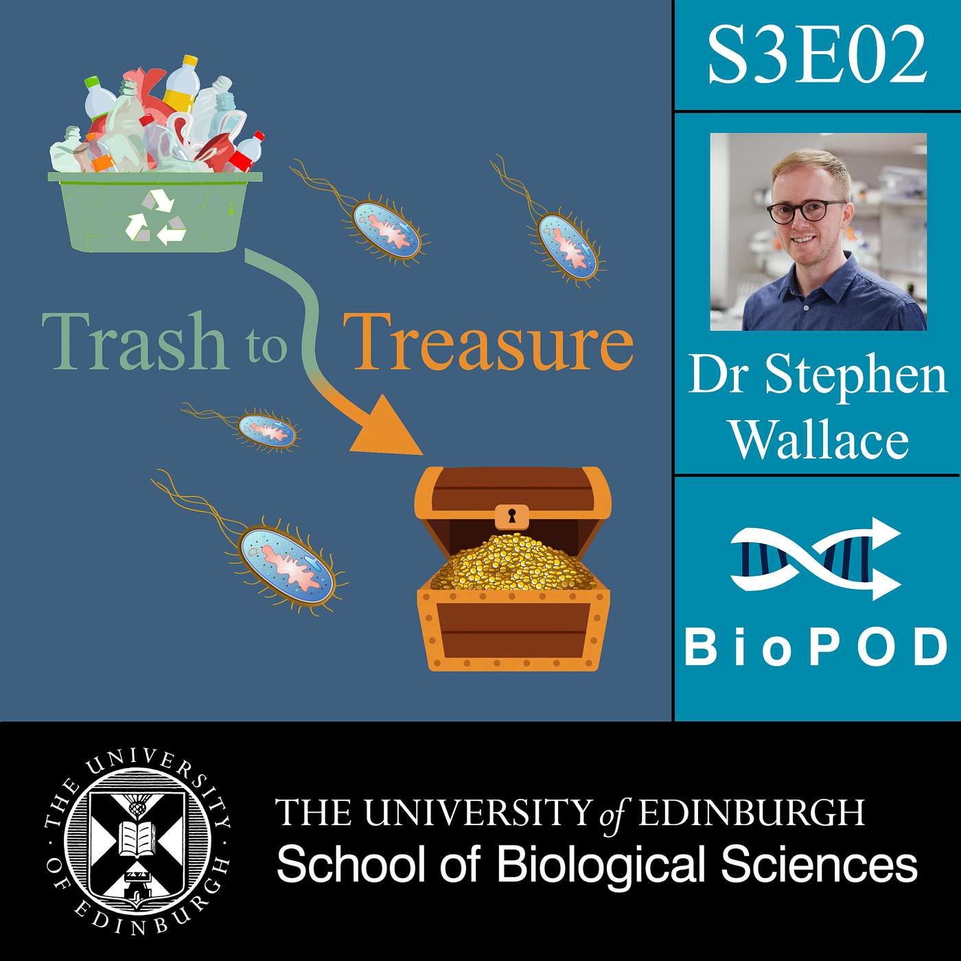 In this episode, we’re diving into how microorganisms could be useful in synthesising biomaterials. Even better, they can be used to clean up waste products and turn them into something useful. Severina Pociunaite sits down with Dr Stephen Wallace to discuss his work and his goals for a sustainable future.