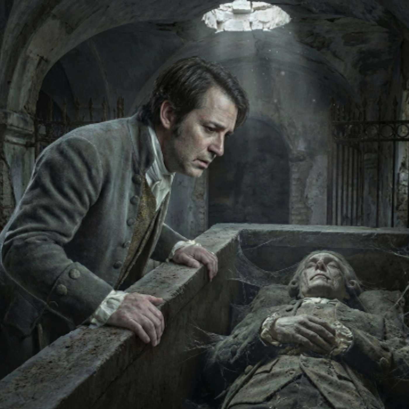 Juan acercó el rostro, intentando ver mejor en la penumbra. Entonces, el rayo de luz de la bóveda iluminó el rostro del difunto.