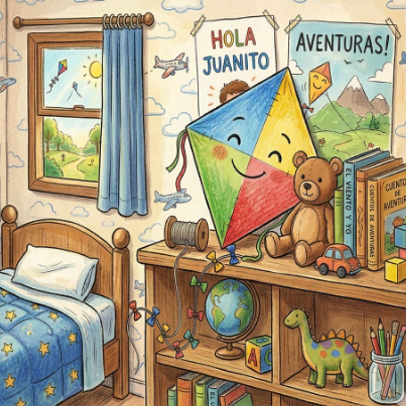 Había una vez, en un pueblo en las montañas una pequeña casa donde vivía una familia que le gustaba salir al parque para su hijo juanito se divirtiera y disfrutara con el aire fresco de las montañas. En aquella casa en el rincón más tranquilo de la habitación infantil había una cometa llamada Colorines. Colorines era particularmente hermosa: tenía cintas de seda de color fucsia, una estructura ligera de madera de bambú y un vestido de papel de seda que brillaba como el arcoíris cuando el sol le daba de frente.