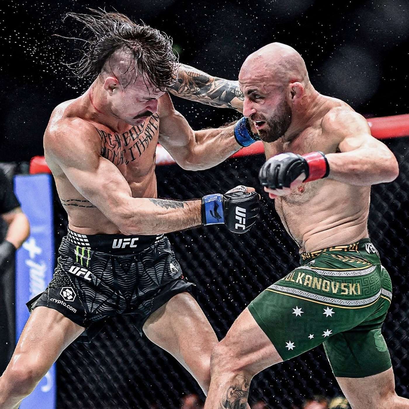 #stevenmarkhamphotography great pic from #ufc325 where @alexvolkanovski retained his @ufc featherweight belt over @diegolopesmma who broke BOTH OF HIS FEET IN THE LOSS.
