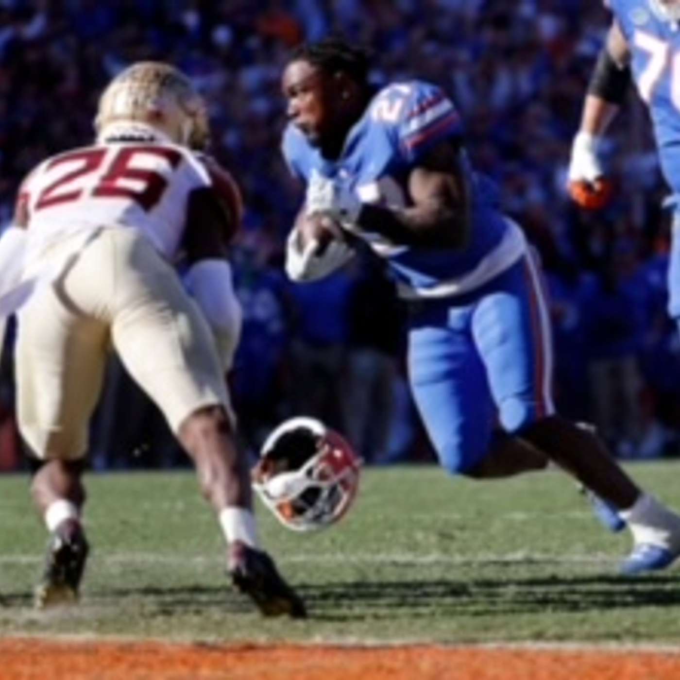 Gators RB Dameon Pierce is a football player. Helmet or not he's going to score.