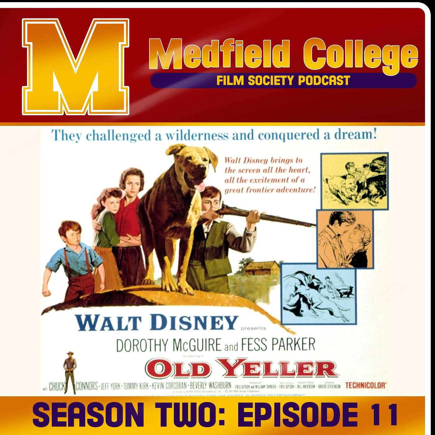 This week the society discusses the 1957 Disney classic Old Yeller, directed by Robert Stevenson and starring Fess Parker, Dorothy McGuire, Tommy Kirk, Kevin "Moochie" Corcoran, and Spike in the titular role. Join us as we settle the frontier with the help of our domesticated friends through thick and thin, hoping to tame the wilderness before we ourselves are tamed by it. Be sure to bring your rugged individualism, as well as a good rope, some even better cornbread, and maybe some tissues.