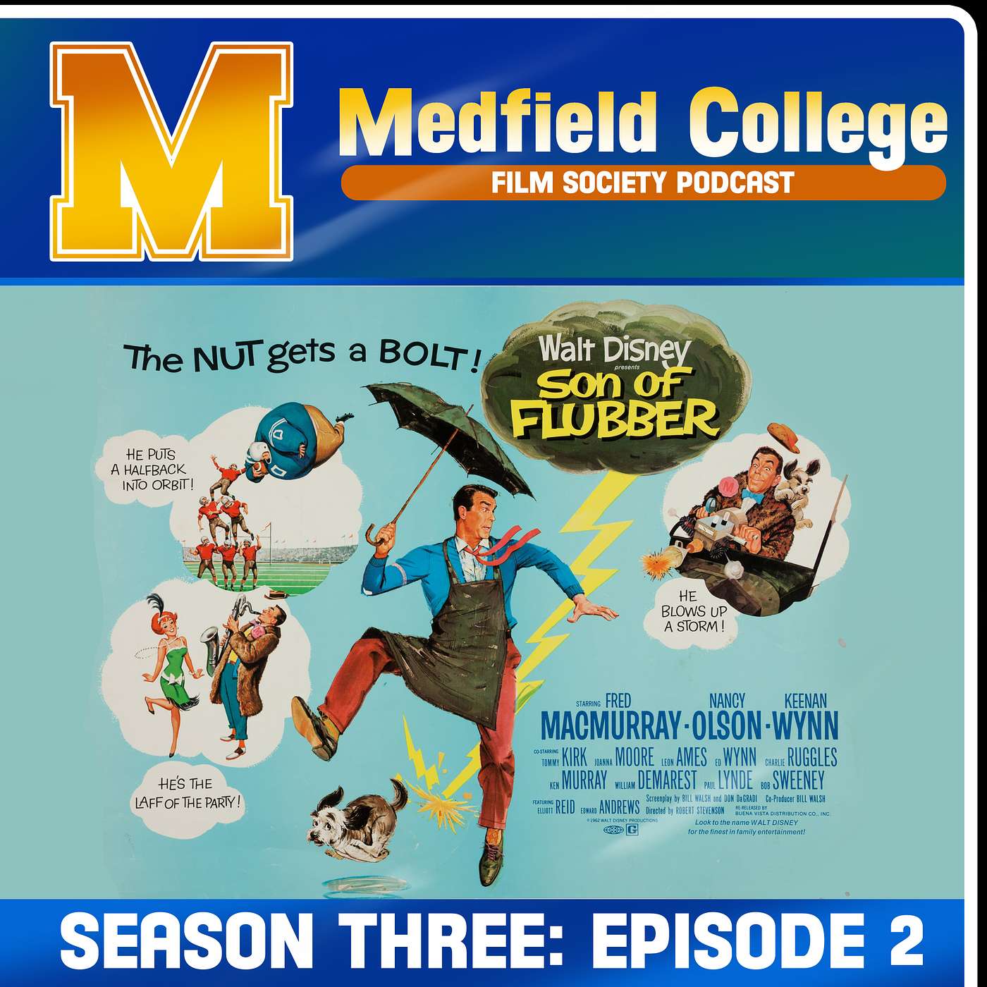 The society is ALL IN 4 FUN in this our first episode of Season 3! This week the society returns to our glorious alma mater in 1963's comedy Son Of Flubber, directed by Robert Stevenson and starring Fred MacMurray, Nancy Olson, and Kenan Wynn as Alonzo Hawk. Join us as we return to the world of Ned Brainard and his marital woes and wacky troublesome inventions. Bring tape for your windows, a saxaphone to dump your snacks in, and your tax records, you'll need them all in Medfield!