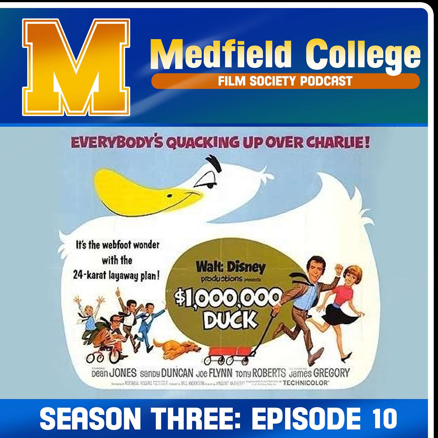 This week the society watches the 1971 comedy The Million Dollar Duck, directed by Vincente McEveety and starring Dean Jones, Sandy Duncan, and Joe Flynn. Ever wonder what would happen if you got a sudden glut of cash via a radioactive duck? Are you up-to-date on your tax law and gold bullion policies? Well, this be the place! Watch out for nosy tax assessors and the government and their textbook overreaches, this one is going to be an EGGSTRAVAGANZA!