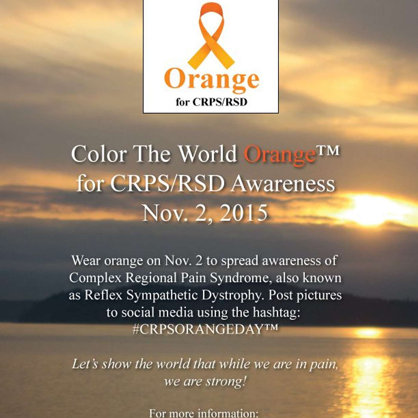 Color the World Orange Day 2025 is TODAY, Monday 11/03. It is always the first Monday of the month. It is to help to raise awareness for Complex Regional Pain Syndrome (CRPS) and involves people wearing orange, lighting landmarks orange, and sharing information on social media. Do you have your Orange on?