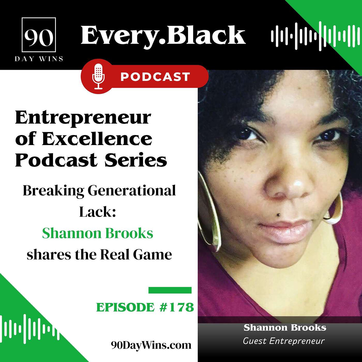 In this powerful episode of the 90 Day Wins Every.Black Entrepreneur of Excellence Series, Coach SandyB sits down with Shannon Brooks, financial services specialist and founder of Brooks & Associates LLC. Shannon opens up about her journey from growing up in a home filled with love and lack to becoming a trusted voice teaching families how to break cycles and build real wealth.