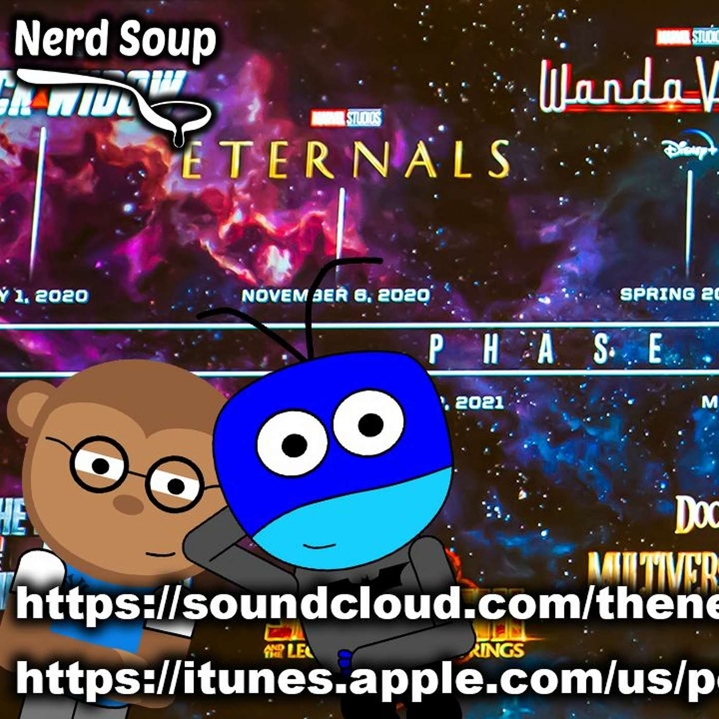 Marvel Phase 4 Timeline Review - The Nerd Soup Podcast!▼TOPICS▼00:00 - Introduction03:30 - MCU Phase 4 Timeline Review (Black Widow)08:37 - The Falcon & Winter Soldier13:00 - Shang Chi17:24 - WandaVision & Doctor Strange 226:14 - Loki28:21 - What If…?31:24 - Hawkeye35:51 - Thor: Love & Thunder41:15 - Phase 5 Movies Announced (Blade, Guardians 3, Black Panther 2, Captain Marvel 2 & Fantastic Four)47:28 - Trailer Reviews (Mr. Rogers Movie, Westworld Season 3, Watchmen & Zombie Land 2)56:14 - Fan QuestionsFOLLOW US ON TWITTER, INSTAGRAM, SOUNDCLOUD, ITUNES, SPOTIFY & FACEBOOK!PATREON - https://www.patreon.com/nerdsoupTWITTER! - https://twitter.com/NerdSoup4uINSTAGRAM - https://www.instagram.com/nerdsoup4u/SOUNDCLOUD! - https://soundcloud.com/thenerdsouppodcastITUNES! - https://podcasts.apple.com/us/podcast/the-nerd-soup-podcast/id1228478674FACEBOOK! - https://www.facebook.com/NerdSoup4u/)SPOTIFY! - https://open.spotify.com/show/22s4vzJRepFYdypykSE1mt