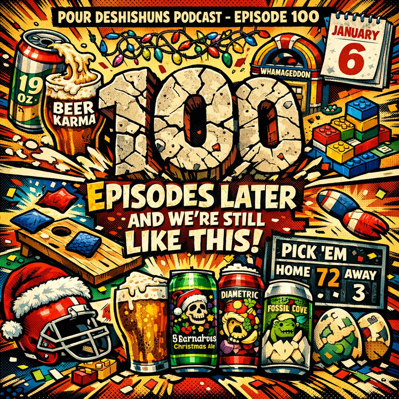 We celebrate Episode 100 with St. Bernardus Christmas Ale, Diametric Brewing Sangria Cyser, and Fossil Cove The Hatchling, while Conor battles through lingering illness and Bryan continues his lifelong struggle to put cornhole bags in holes.