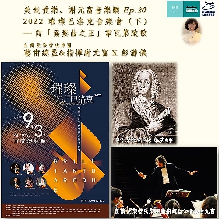 請聽【美哉愛樂。謝元富音樂廳】Ep.20:璀璨巴洛克音樂會(下)—向「協奏曲之王」韋瓦第致敬_宜蘭愛樂藝術總監謝元富X彭瀞儀_2022.08.12