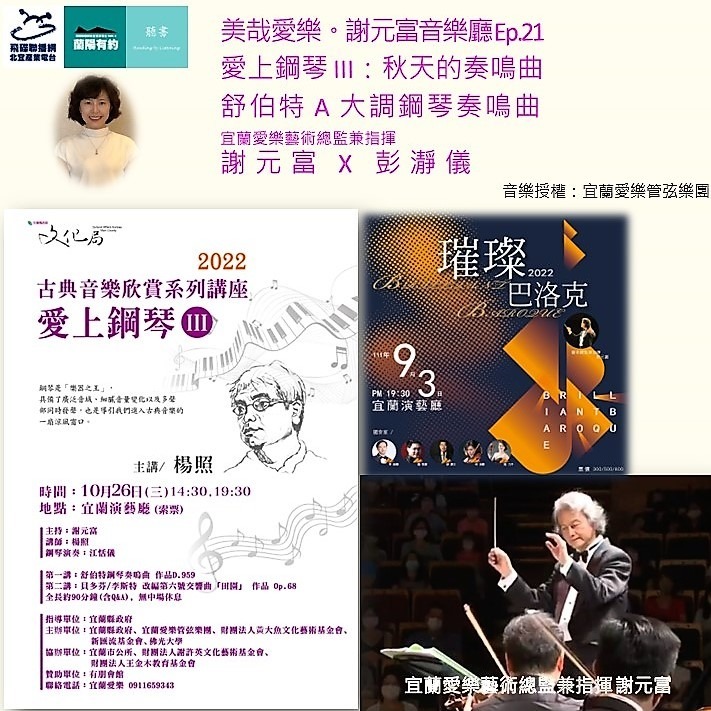 【美哉愛樂。謝元富音樂廳】Ep.21 節目尾聲,請聽「秋天的奏鳴曲——舒伯特A大調鋼琴奏鳴曲 作品D.959」_宜蘭愛樂藝術總監謝元富 X 彭瀞儀