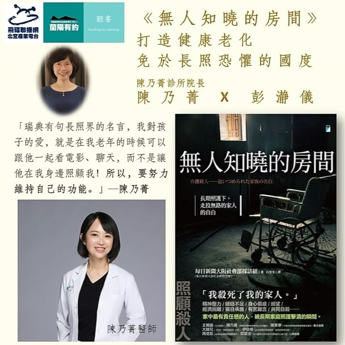 我們能透過本書凝聚社會共識,進而打造臺灣成為一個「免於長照恐懼的國度」嗎?【蘭陽有約】,請聽《無人知曉的房間》_陳乃菁診所院長陳乃菁 X 彭瀞儀