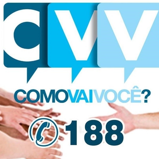 O Centro de Valorização da Vida (CVV) realiza apoio emocional e de prevenção ao suicídio. Atende voluntariamente pessoas que precisam conversar, sob total sigilo. A conversa pode ser por telefone, e-mail e chat 24 horas. Se precisar, 188.