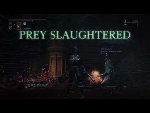 I went into this fight knowing I would die. It's funny because I saw many, many videos of how difficult Ludwig is for a first boss, so I just figured it would take me multiple tries to take his ass down. So I studied up on how to get 2 NPC summons, preferably Confederate Valtr, Master of the League and Confederate Younger Madaras Twin. However, after summoning the Younger Madaras Twin, I was unable to summon Valtr. I figured it was a glitch or something as I kept going back and forth trying to activate the summon. Because of this, I figured I would be dying several times with just one summon and contemplated how many times I'd have to recover my lost souls, though they weren't really that many. And lo and behold, THIS happens!!! I had no idea I would whoop Ludwig's ass the first go at it! I thought I was playing pretty shitty here.