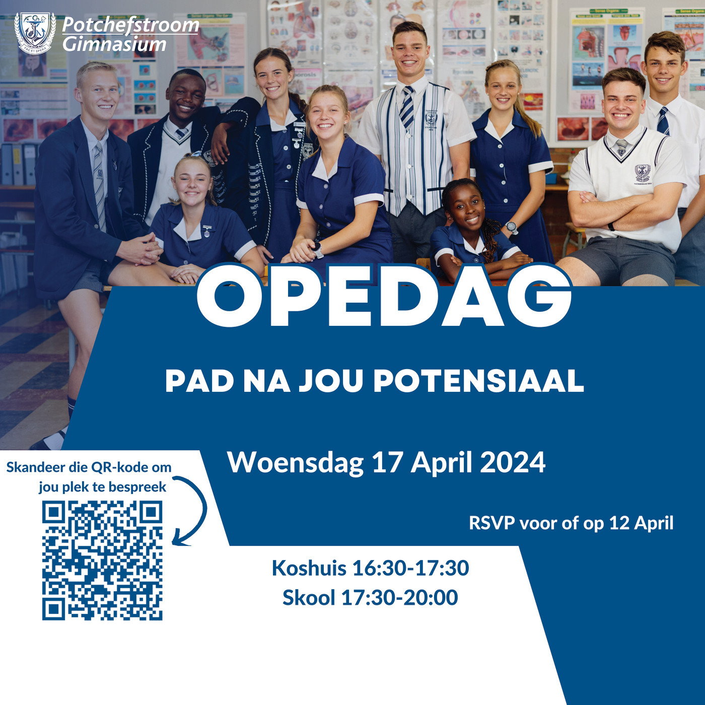 Pulane Nel Sekepe gesels met Mnr. Willie van der Merwe die skoolhoof, Lana Burger die hoofdogter en Hugo Muller van die Matriekraad oor alles wat Potchefstroom Gimnasium leerders kan bied. Hulle opedag is 17 April 2024. Skandeer die kode op die prentjie om jou plek te bevestug.