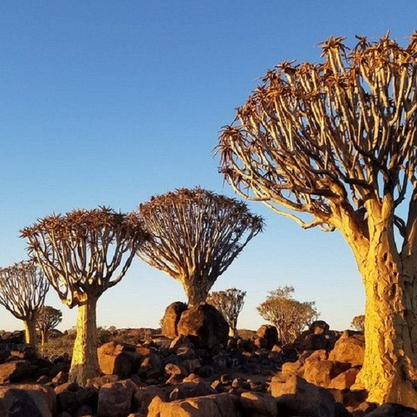 In this podcast, you will learn more about the Quiver Tree Forest, a tourist attraction in Namibia. The forest is located about 14 km north-east of Keetmanshoop, on the road to Koës, on the Gariganus farm. The forest comprises about 250 specimens of Aloidendron dichotomum, locally known as the quiver tree.