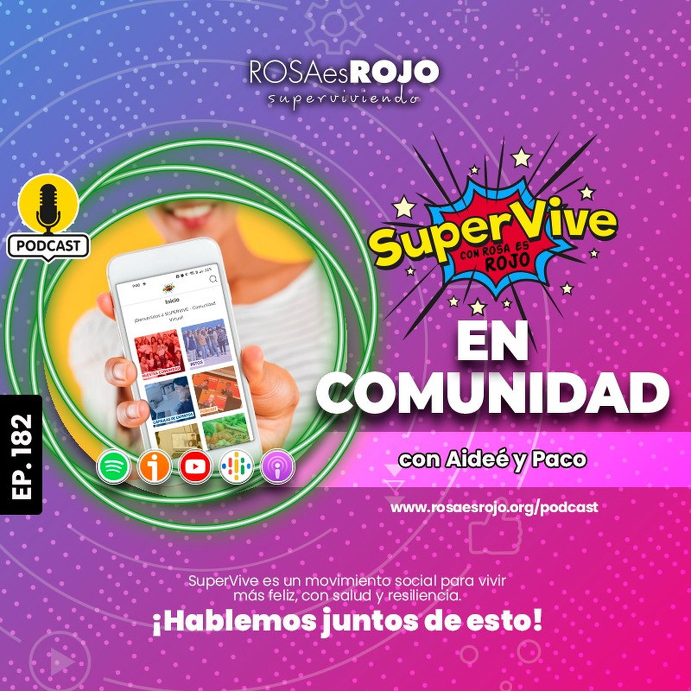 ¡Vivir en COMUNIDAD🤝 es lo de hoy! Y científicamente está demostrado que la comunidad impacta positivamente➕ en tener un estilo de vida más saludable (claro, ☺️ si eliges bien tus comunidades). ¿Quieres tener más salud✨? Vive en comunidad. Comparte con ellos. Pregunta. Propón ideas. Busca acompañantes de metas. En este episodio, Paco y Aideé nos presentan 🌟SuperVive Comunidad🌟, la nueva app de ROSAesROJO y SuperVive para construir comunidades que nos lleven a vivir con más salud y felicidad. ¡Muchos recursos de bienestar te esperan! Divertidos😄 y educativos🤓. SuperVive Comunidad está disponbile en App Store y Google Play y con un CLIC tú puedes formar parte de ella. ¿Qué esperamos? Somos ya más de 340 miembros y queremos seguir construyendo lazos🔗 fuertes con más personas para que el mundo cambie, mejore, y para que nosotros lo hagamos también. ¡Bienvenidos!