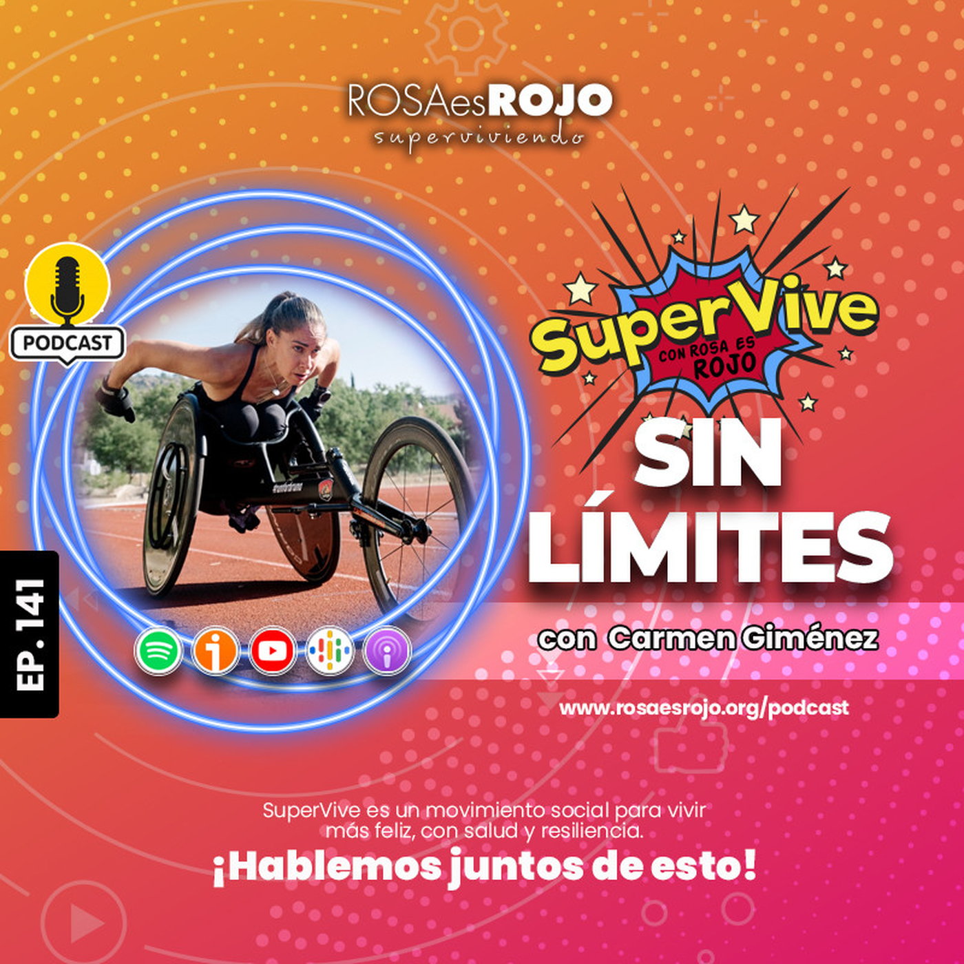 Para 🌟SuperVivir🌟 Sin Límites necesitas escuchar👂 a Carmen Giménez, quien desde España🗺️ nos acompaña en este episodio. Tras un evento de violencia❌ de género, Carmen sufre una lesión medular. La silla de ruedas cambia su vida y enfoca su actividad a la inclusión de niños y niñas discapacitados.