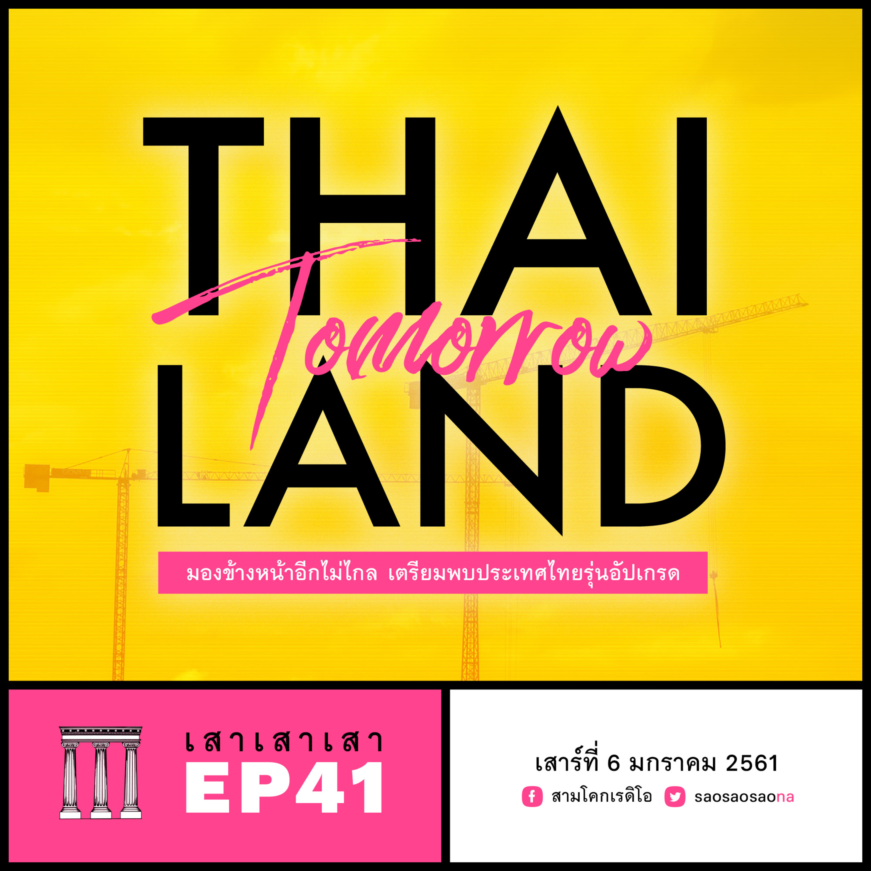EP41 นี้ว่ากันด้วยเรื่องราวของประเทศไทยในอนาคตอันใกล้ อยากให้คุณฟังแล้วลองจินตนาการตามไปด้วยว่าเกิดอะไรขึ้นกับประเทศไทยกันหนอ ทำไมอยู่ดีๆ ก็มีโครงการก่อสร้างอาคารสาธารณะขนาดใหญ่ ระบบโครงสร้างพื้นฐาน ระบบเมืองนั่นนี่ทั้งเล็กใหญ่ ต่างก่อตัวเป็นรูปเป็นร่างอย่างรวดเร็ว ไม่ใช่แค่ในเมืองกรุงเท่านั้น แต่เกิดขึ้นอย่างตูมตามทั้งประเทศ
