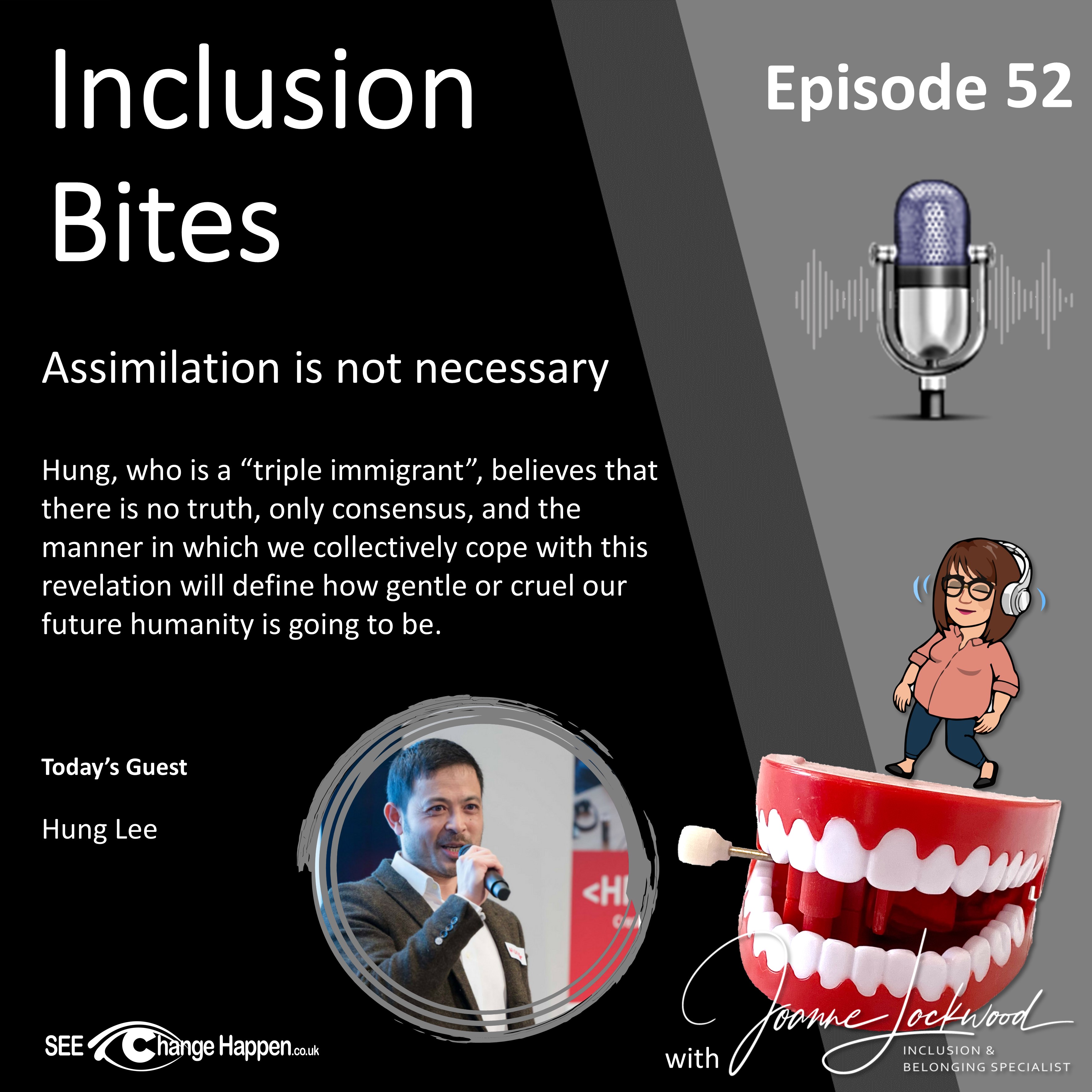 Hung as a “triple migrant” believes when you are from an ethnic background that is not native to a country you end up living in, although you learn to follow the social rules and obey cultural values, you may never fully feel part of that group, without caveat. He remembers from his childhood trying to work out how he could belong better so that he didn’t stand out, even trying to wash his face for longer to make it appear whiter, after taunts that he looked dirty. This need to fit in can go in the wrong direction, with built up bitterness at not feeling including leading to either the person trying to over correct, becoming hyper assimilated, or going the other way and rejecting the culture that rejected you, and risking becoming permanently marginalised. Hung wants everyone to understand that it is OK to not feel like you belong.