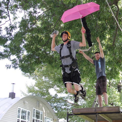 - Pic of the Week - Brian Kunkle hams it up while practicing BASE exits from Tailored For Survivals BASENATOR for this Octobers Bridge Day in West Virginia. Photo by Natalia Povroznyk.
