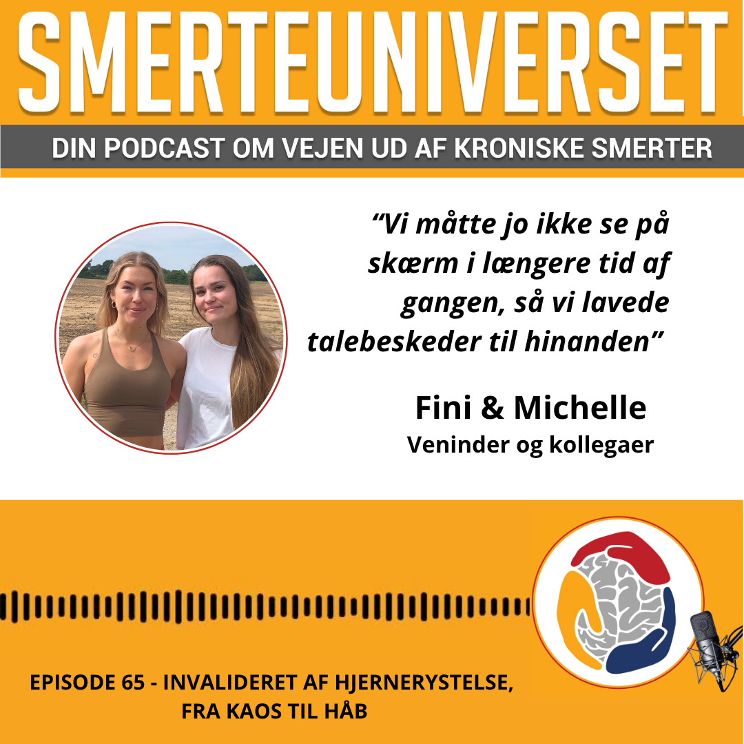 I denne episode af Smerteuniverset møder vi to veninder og kollegaer, Fini og Michelle, der begge har oplevet deres liv blive vendt på hovedet af en hjernerystelse. Begge arbejder til dagligt som sygeplejersker, er aktive og sociale, men en pludselig hjernerystelse satte en stopper for alt det, de elskede.