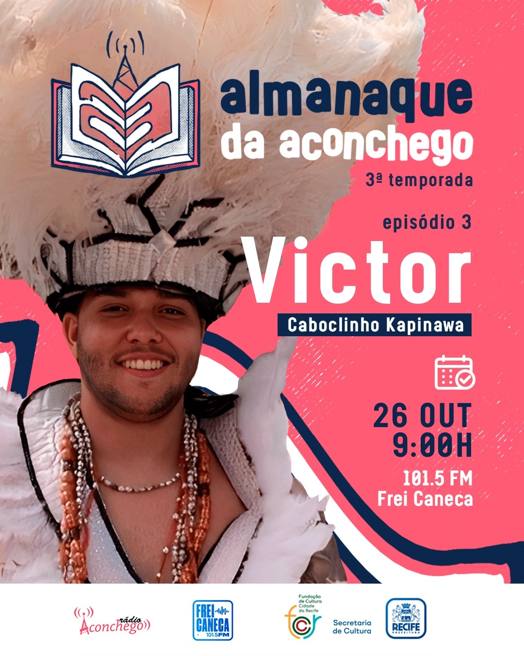 No terceiro programa da terceira temporada do Almanaque da Aconchego, Vitor nos conta como sua vida e histórias estão vinculadas aos caboclinhos Kapinawá da Linha do Tiro. Na coluna Rebuliço, Eduarda Nunes conta um pouco da história do Coco de Mulheres.Na coluna Aqui se respira lucha, Gus Cabrera apresenta o informativo diário da Rede de Mídia Alternativa da Argentina, Enredando las mañanas.