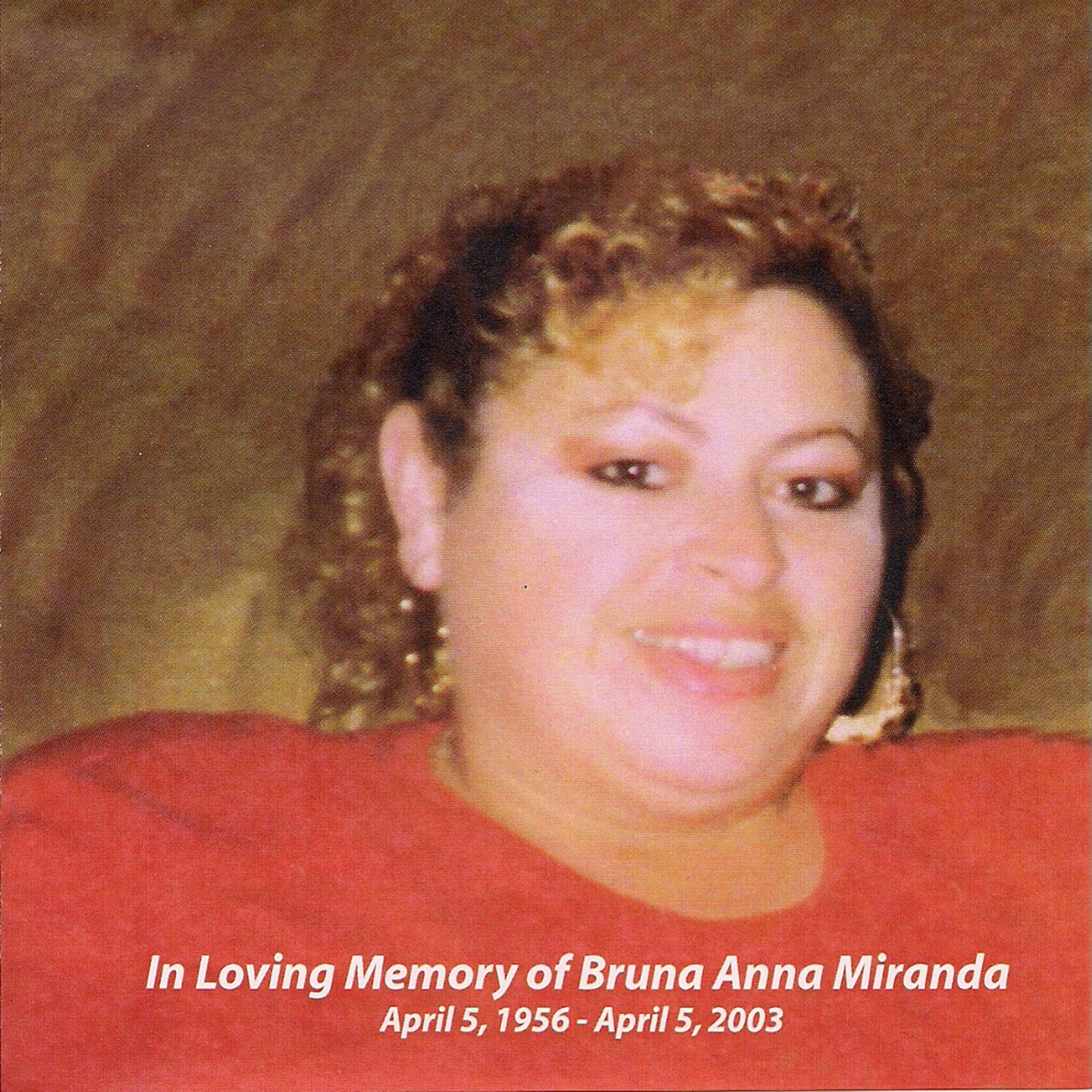 A CD put together in Memory of Bruna Anna Miranda April 5th,1956 - april 5th,2003...Forever in our Hearts...A compilation of some of her favorite tunes...R.I.P. Bruna...DECOTO Y Que !!