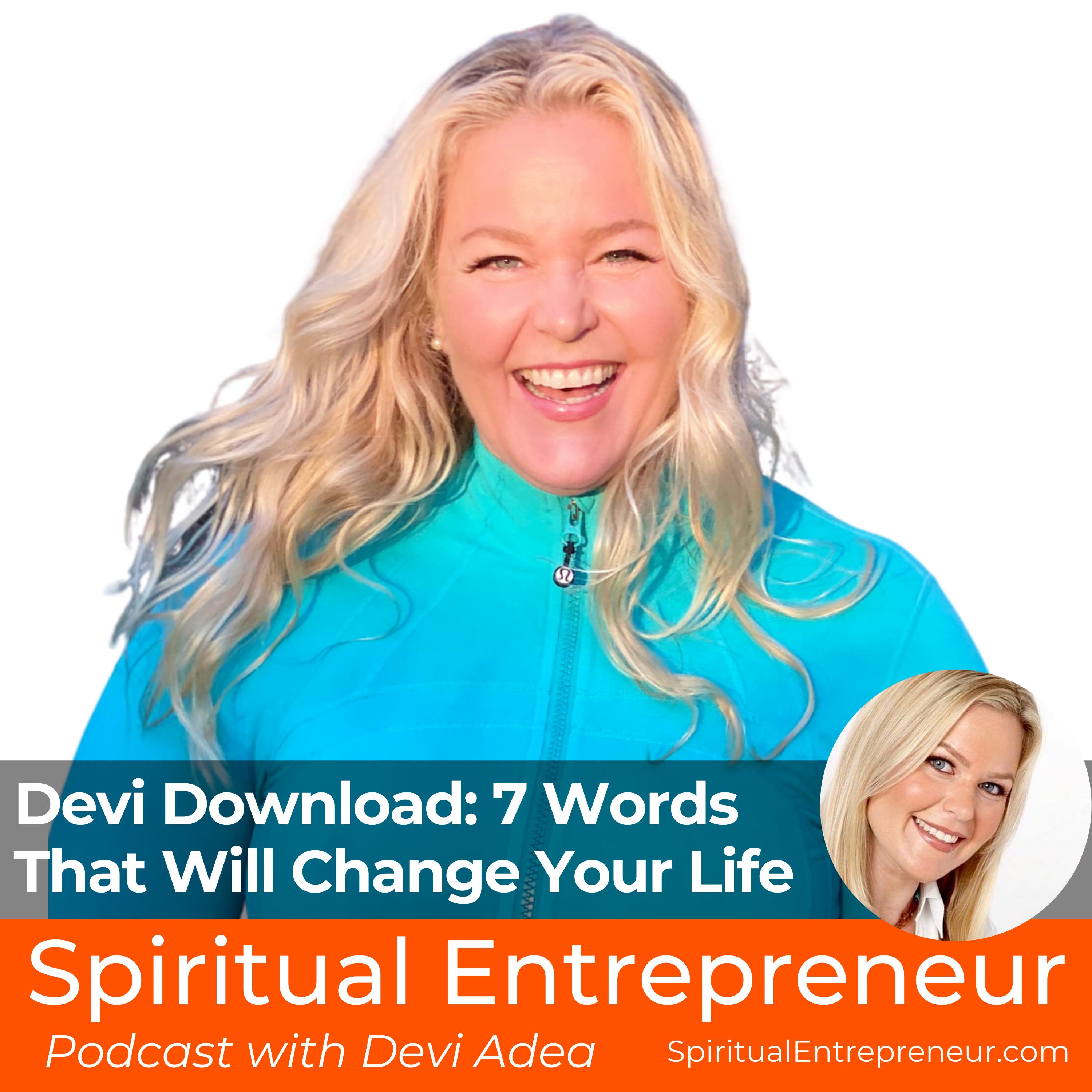 (Devi download) In this episode of the Spiritual Entrepreneur, I share the “7 Words That Will Change Your Life". These 7 words have been a huge lifeline for me in my own life and have granted me so much grace and ease in manifesting what is needed in the moment. If you are challenged in any area of your life or business right now or are wanting to upgrade any area of your business, I invite you to listen in to this episode and try out these 7 words this week and then pay attention to what "shows up". Please let us know what beautiful "miracles" (which truly are available every day of your life - one breath and 7 words away) transpire for you.