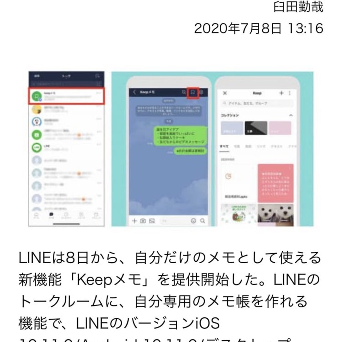 LINEに新しい機能が仲間入り! 裏技的な使っていたメモ帳機能が、公式機能となりました!