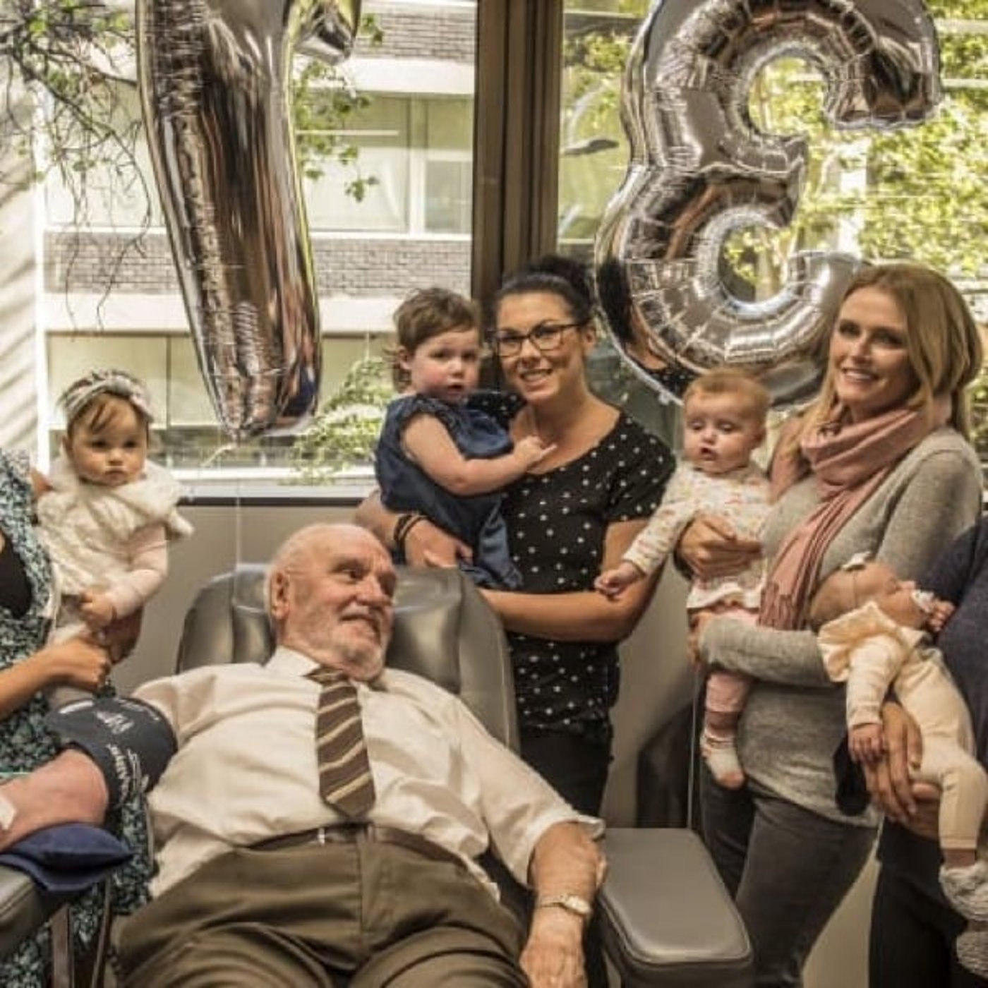 81歳になり最後の献血(1173回目)のとき、彼の血液で救われたお母さんと赤ちゃんがかけつけました。