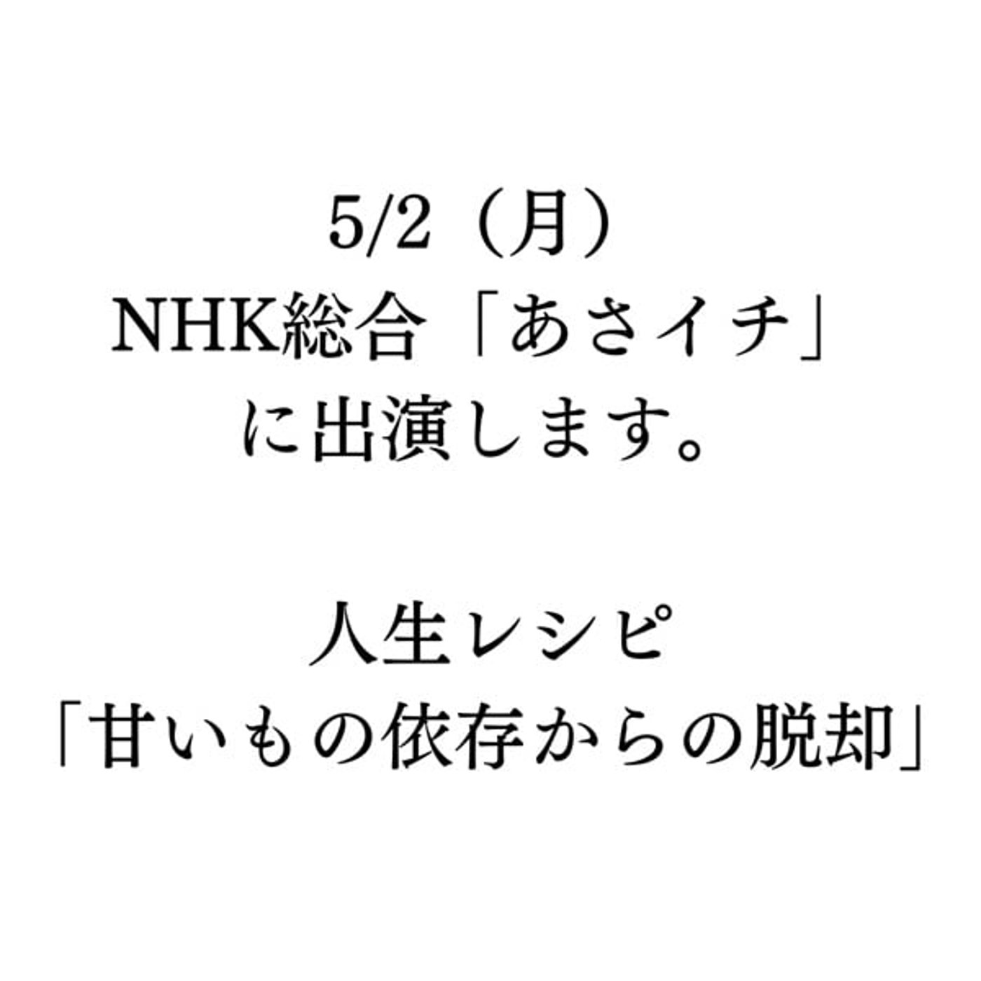 5/2(月)NHK「あさイチ」8:15〜 に出演します✨