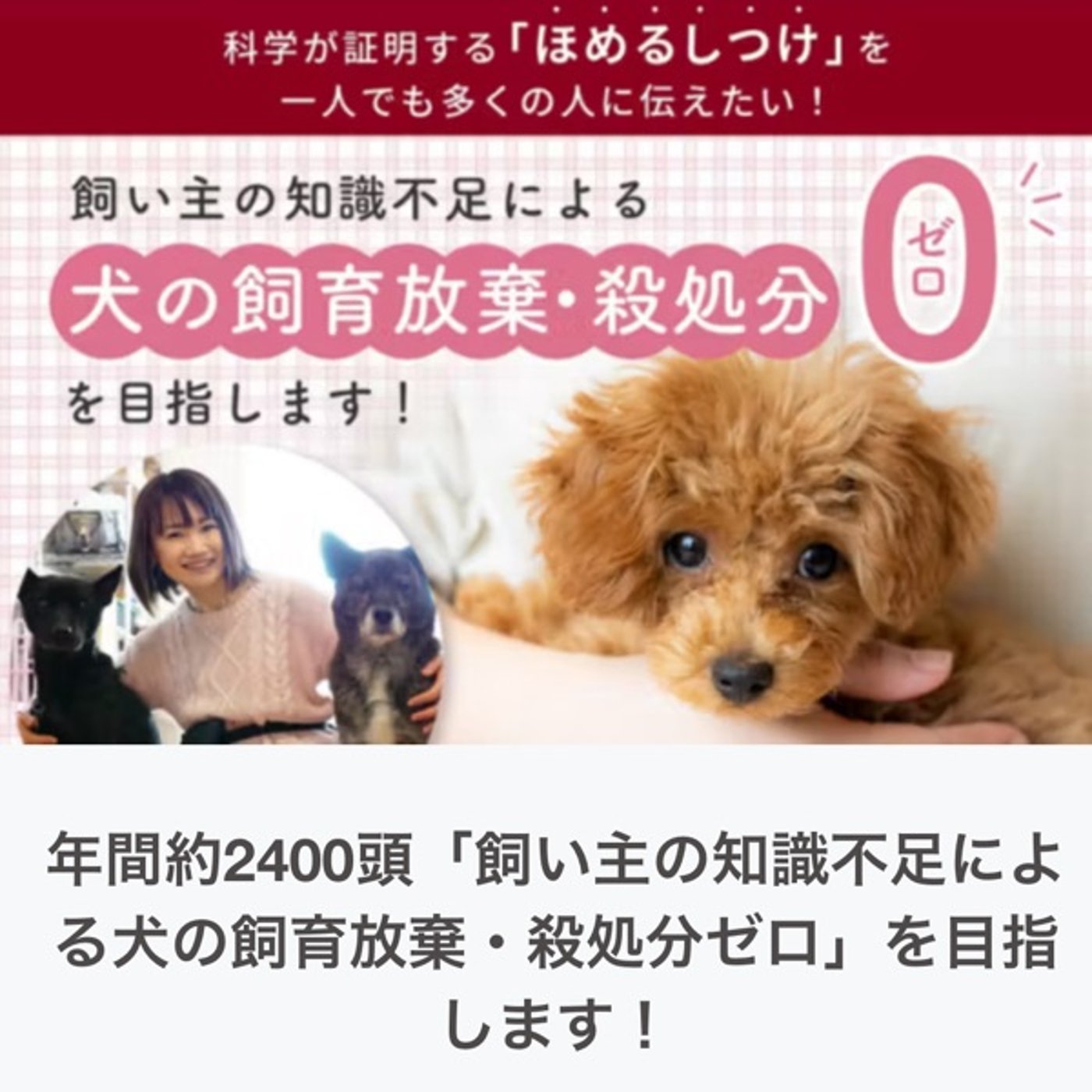 🐶年間約2400頭「飼い主の知識不足による犬の飼育放棄・殺処分ゼロ」を目指します!
